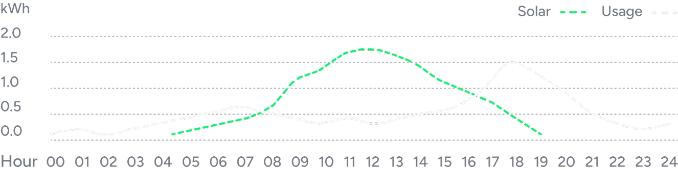 We forecast how much free energy will be generated from your solar panels, and how much energy costs from the grid every 30 minutes based on your smart time-of-use tariff.